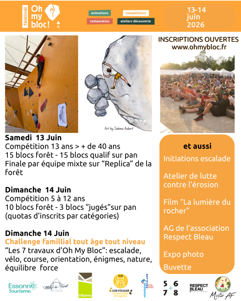 “Les 7 travaux d’Oh My Bloc”: escalade, vélo, course, orientation, énigmes, nature, équilibre force